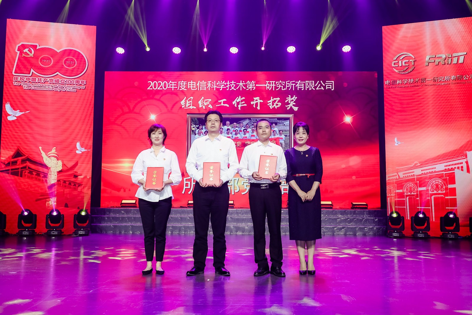 6月29日下午,电信一所隆重举行“百年党史励初心,共创时代新华章”庆祝中国共产党成立100周年大会,全所近三百名党员及职工参会。活动伊始,电信一所党委书记、副总经理蒋红梅代表做大会致辞,电信一所总经理、党委副书记邱详平宣读《关于表彰2020年度优秀共产党员、优秀党务工作者、先进党组织的决定》。蒋红梅书记、邱祥平总经理为荣获年度“两优一先”的代表颁奖荣誉证书,并为在党三十年、二十年党员代表颁发纪念奖杯。随后进行了文艺演出。